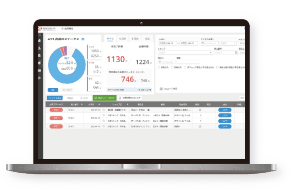 当社は、EC サイト構築、受注管理、商品管理、顧客管理、出荷指示など受注から出荷までの全てを、自社開発システムを開発・運用し、効率化しております。EC サイトに必要なオペレーション / マーケティングをシステムが支援し、ローコストオペレーションを実現しております。また、システムによりリアルタイムで受注状況の管理と、効率の良い印刷工程を指示し、人的ミスを未然に防止する事で納期ロス・出荷漏れ「ゼロ」を生む製造状況を作っています。